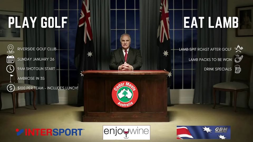 Ambrose in teams of 3. Lamb spit roast. Drink specials. Australia Day - Sunday, January 26. Riverside Golf Club. Only $100 per team, including lunch!